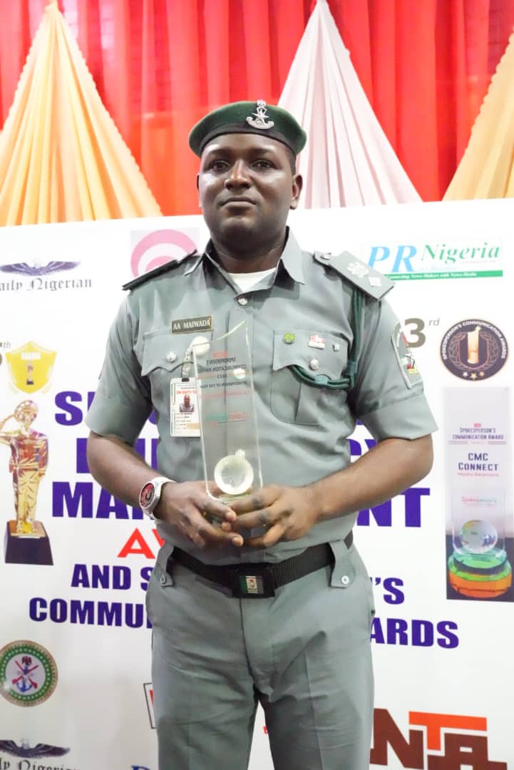 LAGOS/Nigeria: The Nigeria Customs Service’s National Public Relations Officer, Chief Superintendent of Customs, Abdullahi Aliyu Maiwada, has been honoured with the esteemed ‘Spokesperson of the Year’ Award by Spokesperson’s Digest, a division of Image Merchant Public Relations.