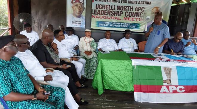 UGHELLI/Nigeria: The All Progressives Congress (APC) in Ughelli North Local Government Area of Delta State on Friday inaugurated its Leadership Council with a firm pledge to deliver President Bola Tinubu and Governor Sheriff Oborevwori in the 2027 general elections.
