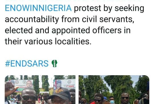 He pointed out that Nigerians should continue the #ENDSARS, #ENDBADGOVERNANCENOWINNIGERIA protest by seeking accountability from civil servants, elected and appointed officers in their various localities.