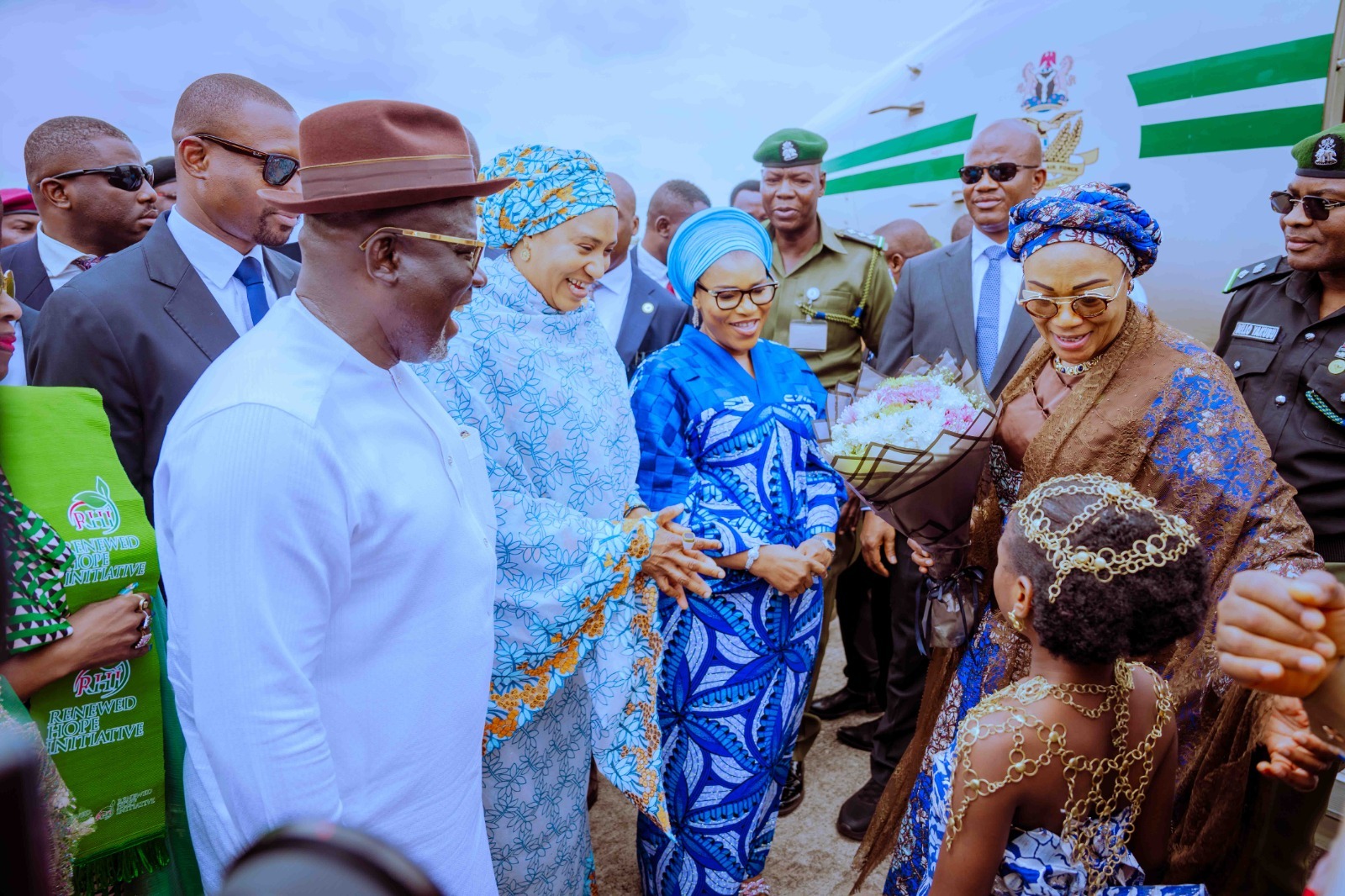 The First Lady was received at the Asaba International Airport by Governor Oborevwori, his wife, Deputy Governor Monday Onyeme, and other dignitaries, marking the beginning of her engagements in Delta State.