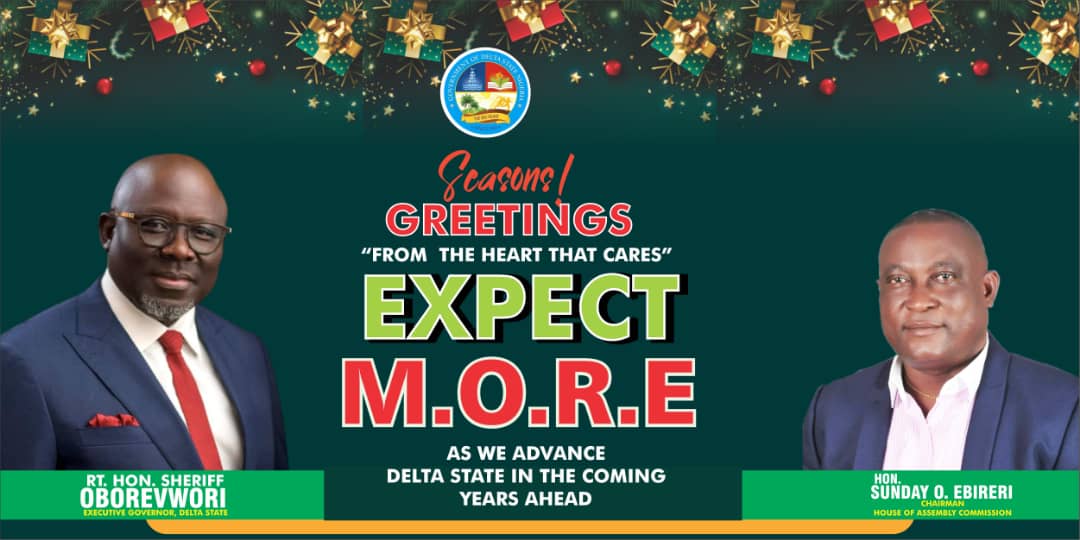 He said, “On behalf of the Delta State House of Assembly Service Commission, I extend warm felicitations to His Excellency, Rt Hon (Elder) Sheriff Oborevwori, Governor of Delta State, the Speaker of the Delta State House of Assembly, Rt Hon Emomotimi Guwor and Honourable Members of the State Legislature on the Christmas and New Year celebrations.