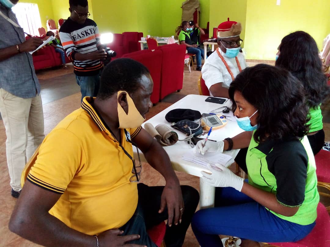 EZI/Nigeria: In a bid to complement government’s effort in the provision of quality healthcare for people at the grassroots in Anioma region of Delta State, Nigeria, a non-governmental organisation, OMIWA Foundation in collaboration with Anioma Medical Professionals Forum conducted free medical outreach for residents of Ezi community and environs on Saturday 17th and Sunday 18th July, 2021. The two-day medical outreach which was held at the Community Hall, Obi’s Palace, Ezi witnessed large turnout, with over 400 beneficiaries.