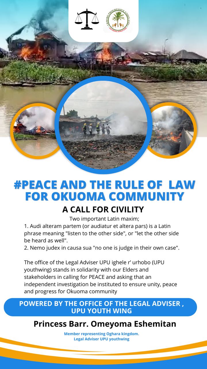 UGHELLI/Nigeria: In response to reported communal crises and the tragic killing of Nigerian soldiers in Okuama community, Ughelli South Local Government Area, the Urhobo Progress Union (UPU) Youth Wing has issued a resolute statement condemning the acts and demanding justice.